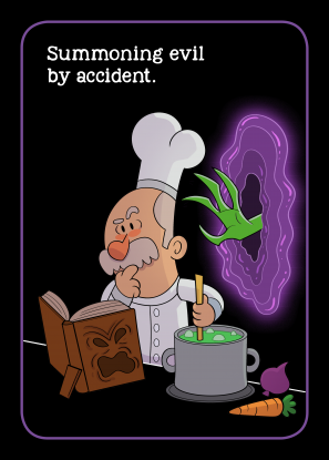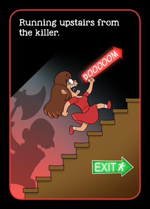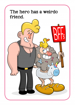 When she's not drawing, Anna-Maria loves to hang out at LARP weekenders and she's also a huge movie nerd. So I knew right away she was the perfect fit to illustrate the Movie Cliché cards. I collected and scribbled ideas for the clichés while Anna-Maria started doodling characters and designs for the cards.